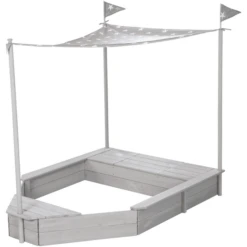 Bovendien is het dak gemaakt van een weerbestendige stof, zodat de Sand box zonder problemen buiten kan blijven staan en kan wachten op een volgend bezoek van u.